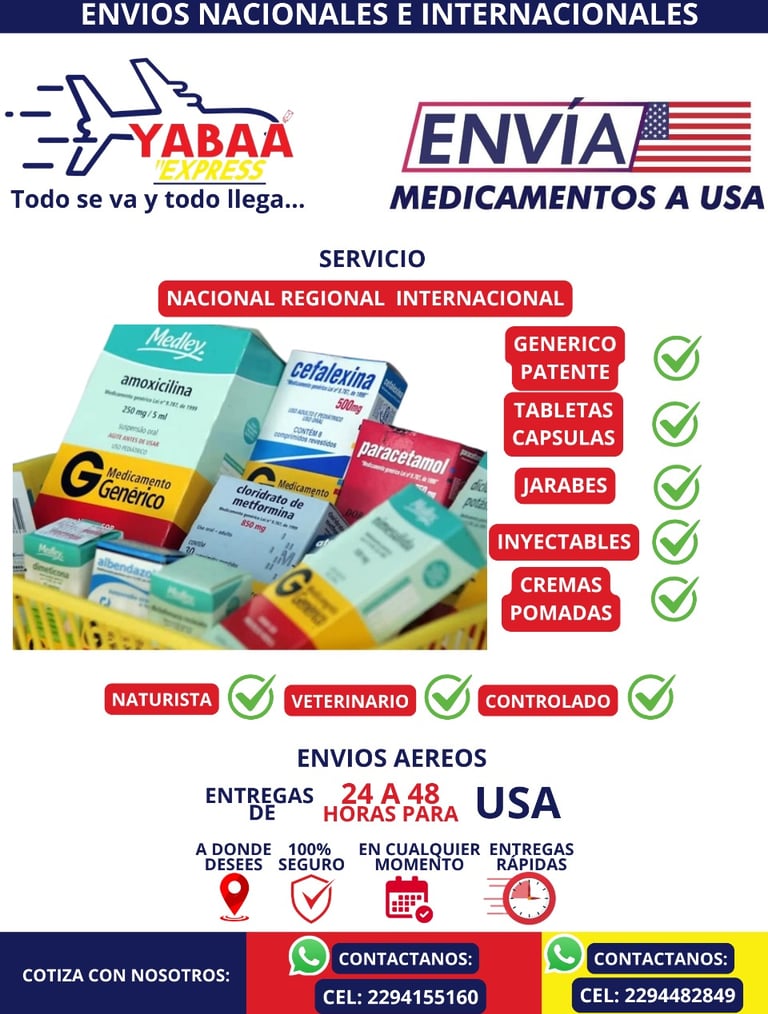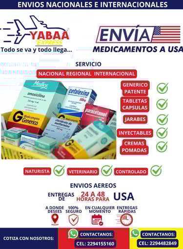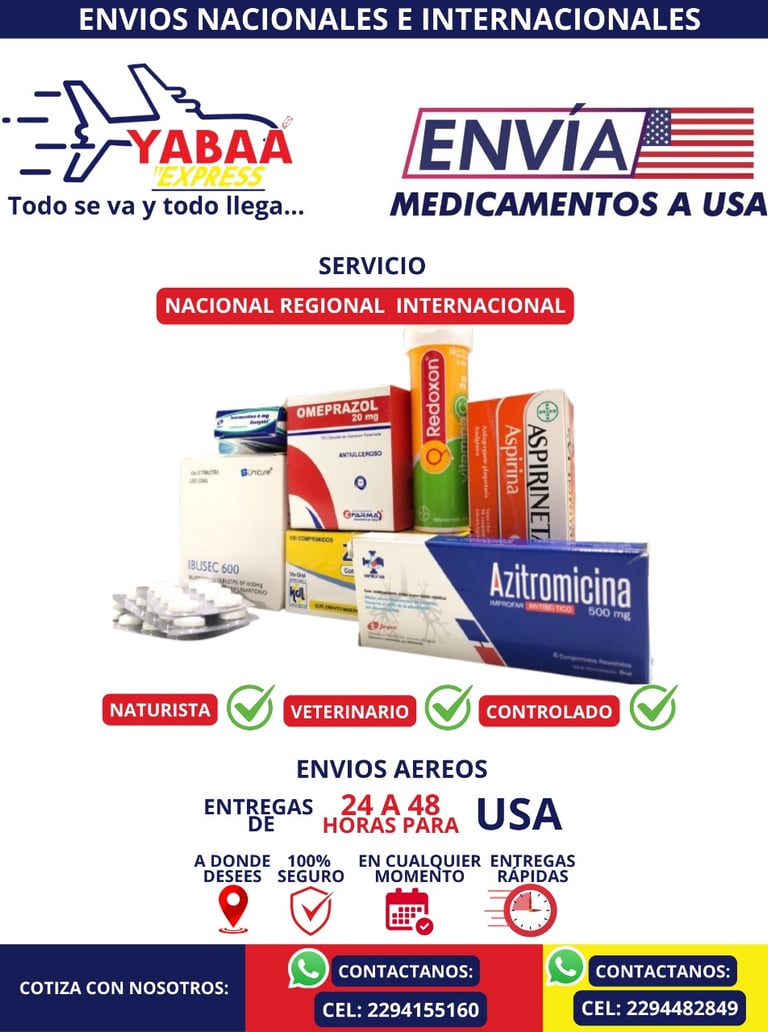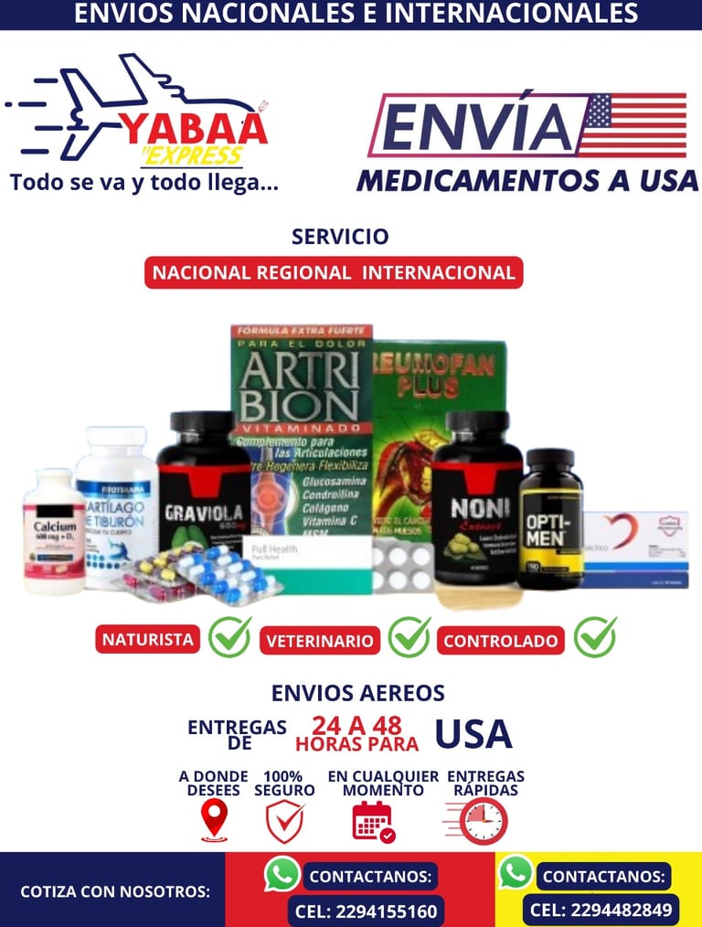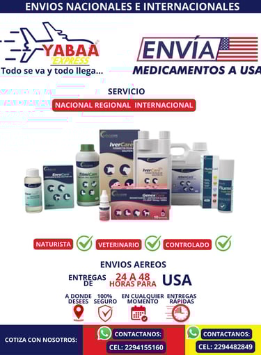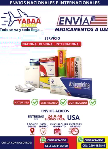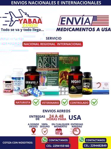 Ofrecemos envíos nacionales e internacionales de alimentos y medicamentos sin restricciones en cantidades.